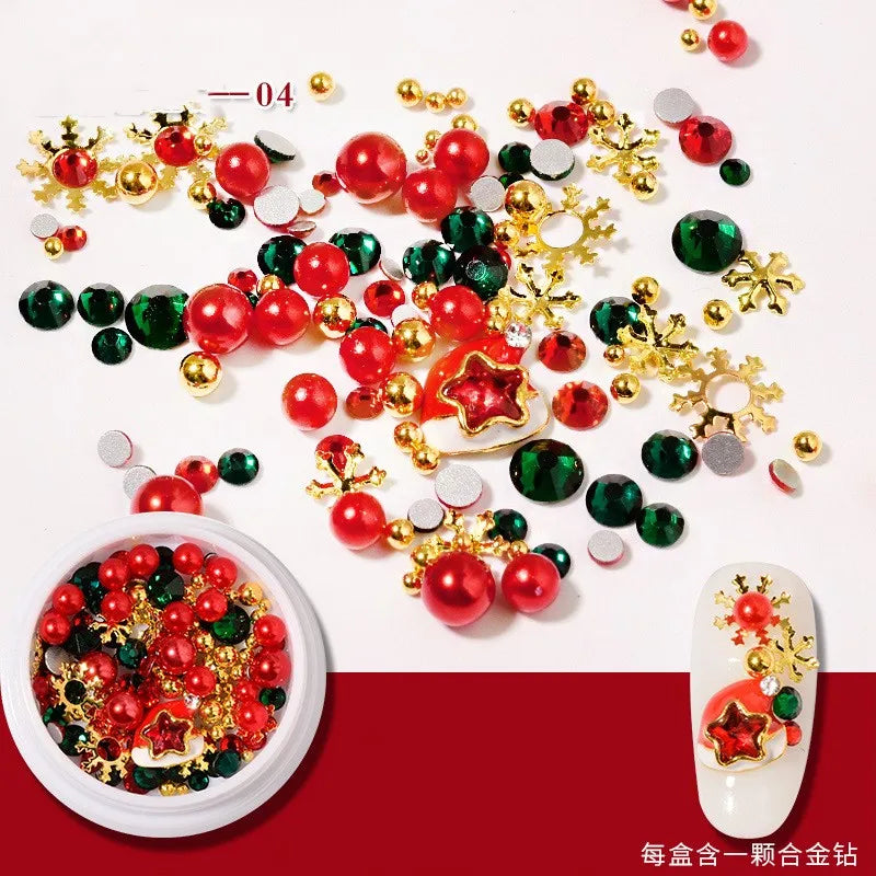 CHS008 Christmas Nail Wheel Glitter Rhinestone Nail Art Decorations Mixed Snowflake Santa Hats 3D Metal Alloy Jewelry