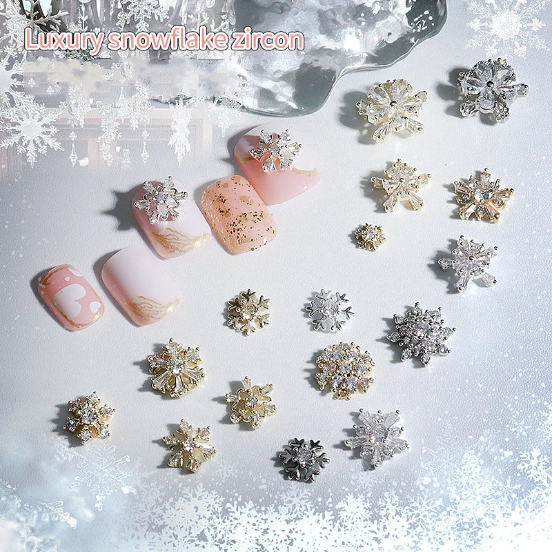 CHS015 Christmas Nail Art Zircon Charms 3D Snowflake Nail Glitter Sticker Supplies Accessories Shiny Xtmas Nail Rhinestones Jewelry