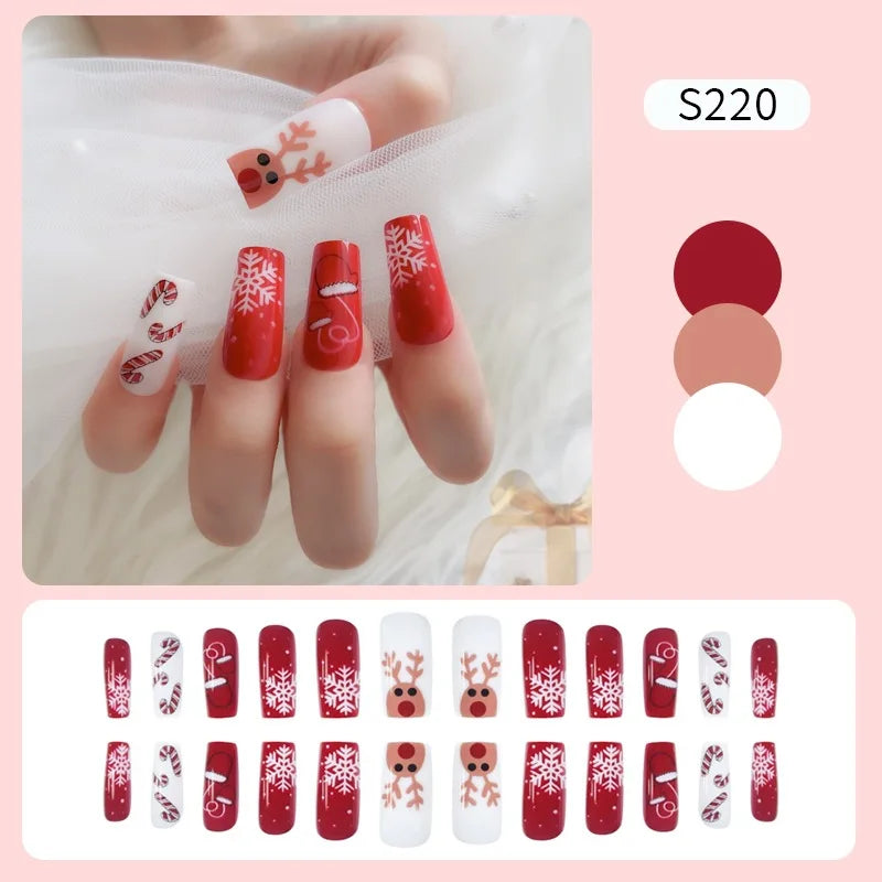 CHS023 Christmas style False Nails Long Press On Nail Tip Wholesale Vendor Custom Logo Acrylic Nail Artificial Fingernails