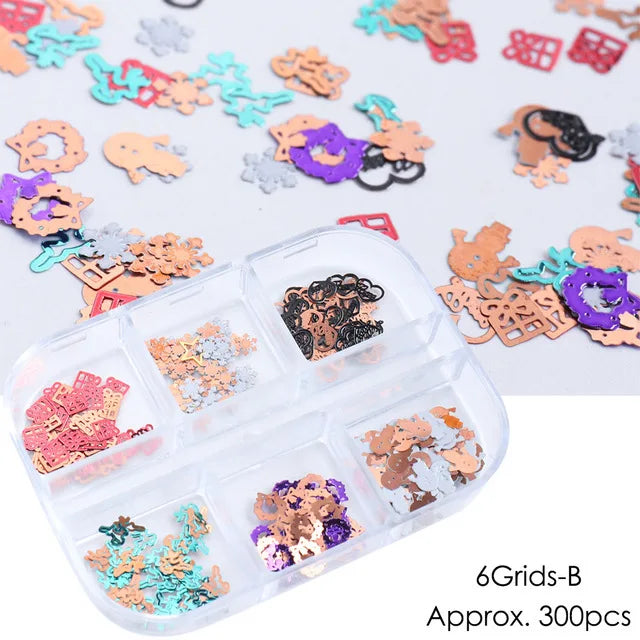 CHS026 Winter Nail Art jewelry Christmas Golden Hollow Computer Tablet Snow Bell Elk Nail Flakes Boxed