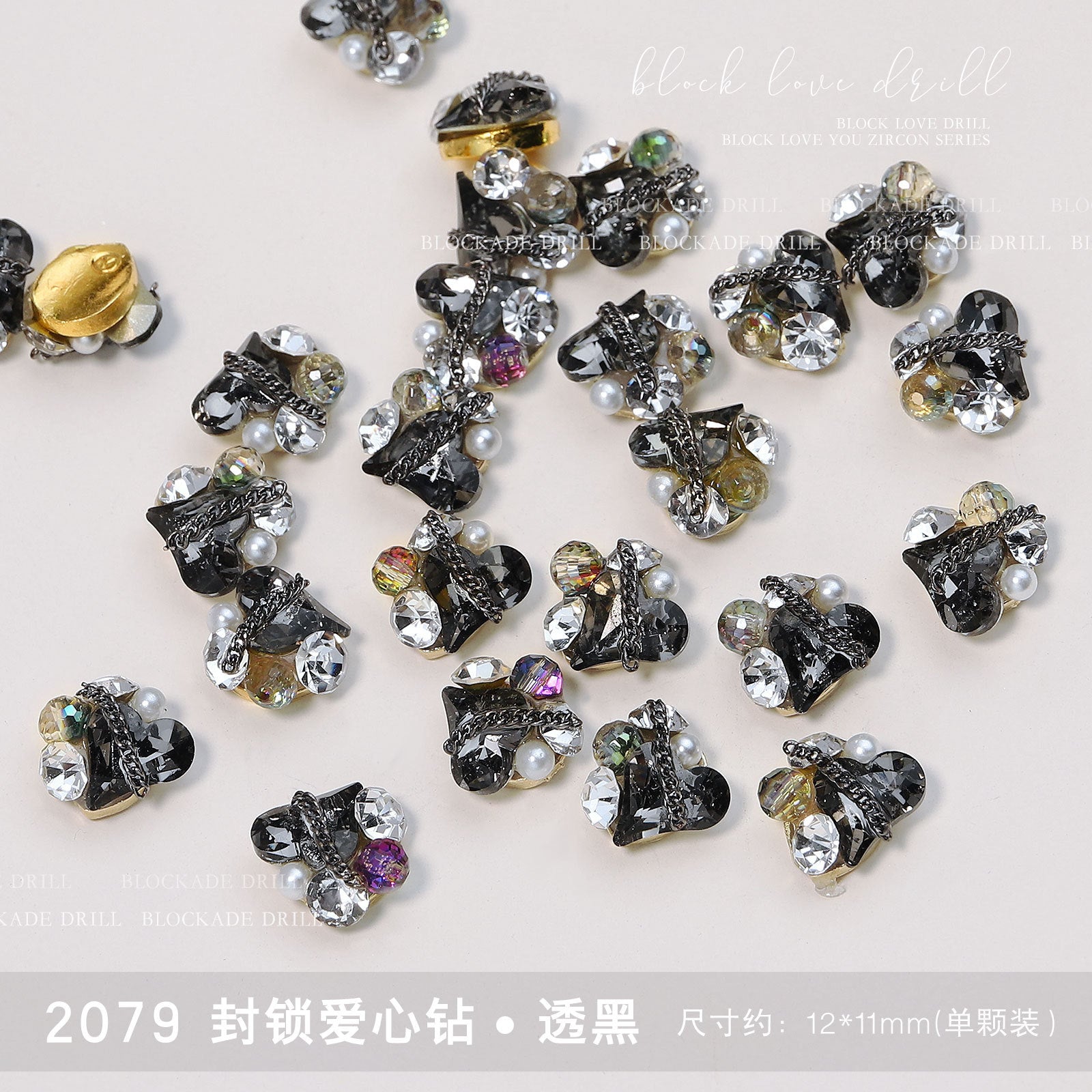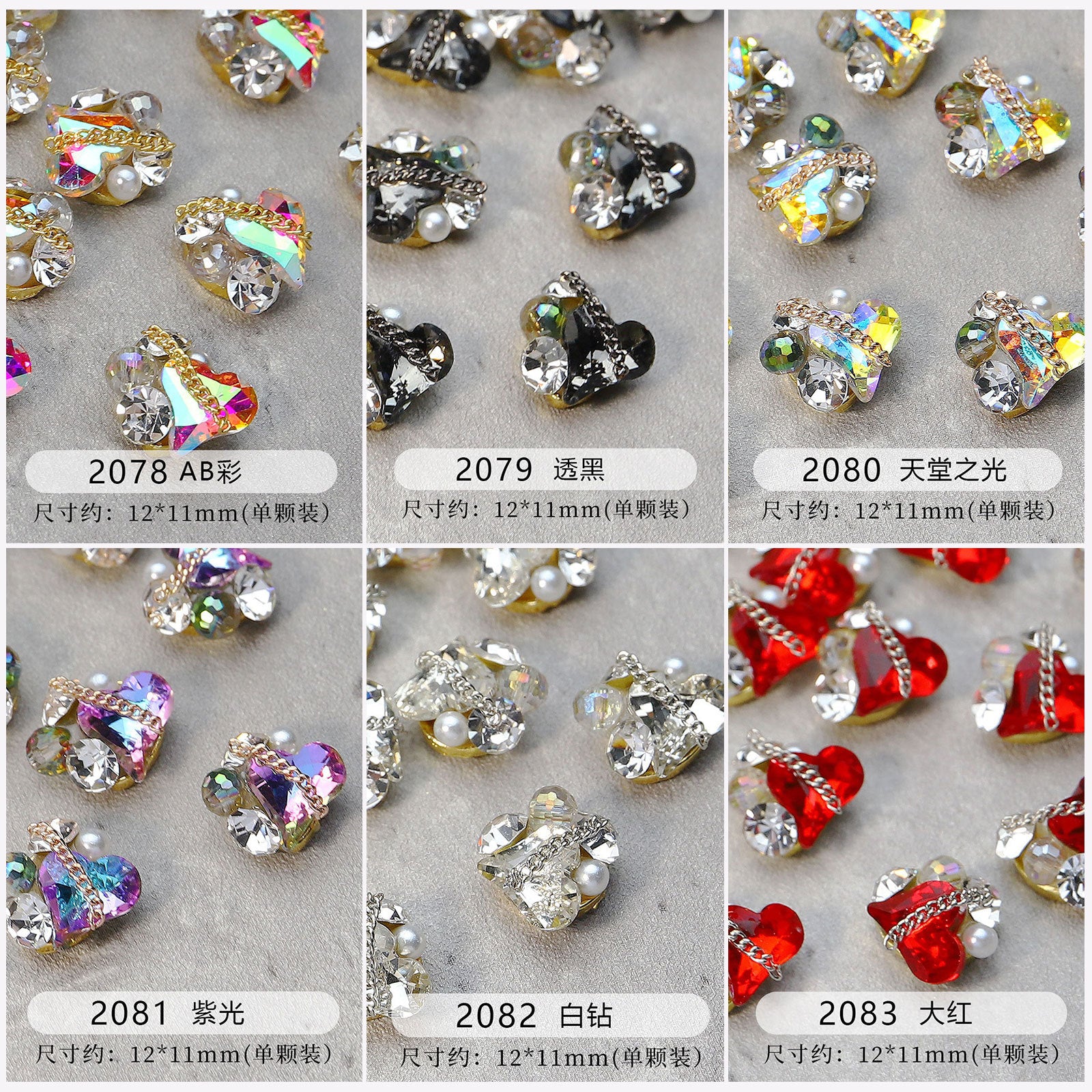 FDMB004 New manicure love pile drill, three-dimensional rhinestone metal chain, crystal diamond manicure