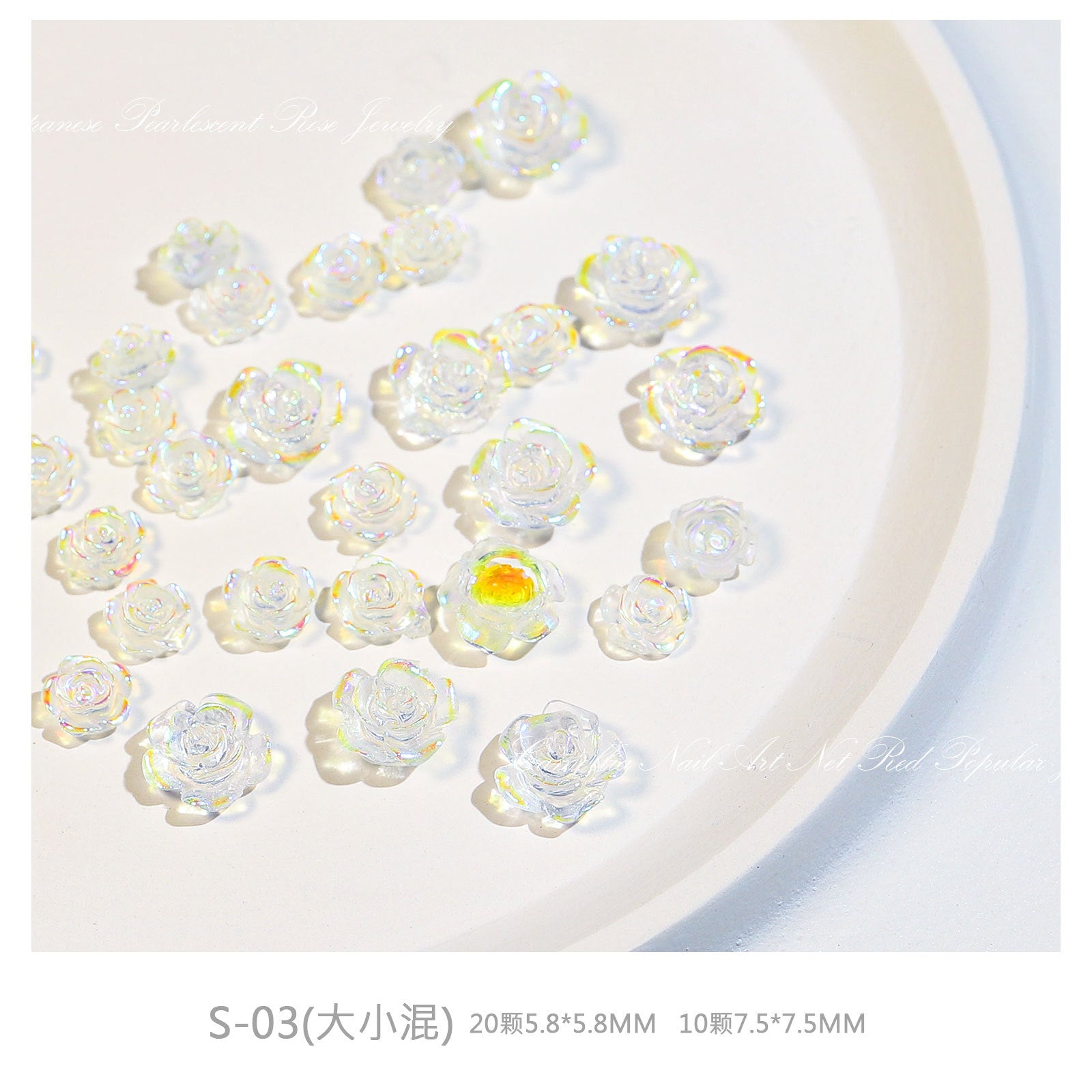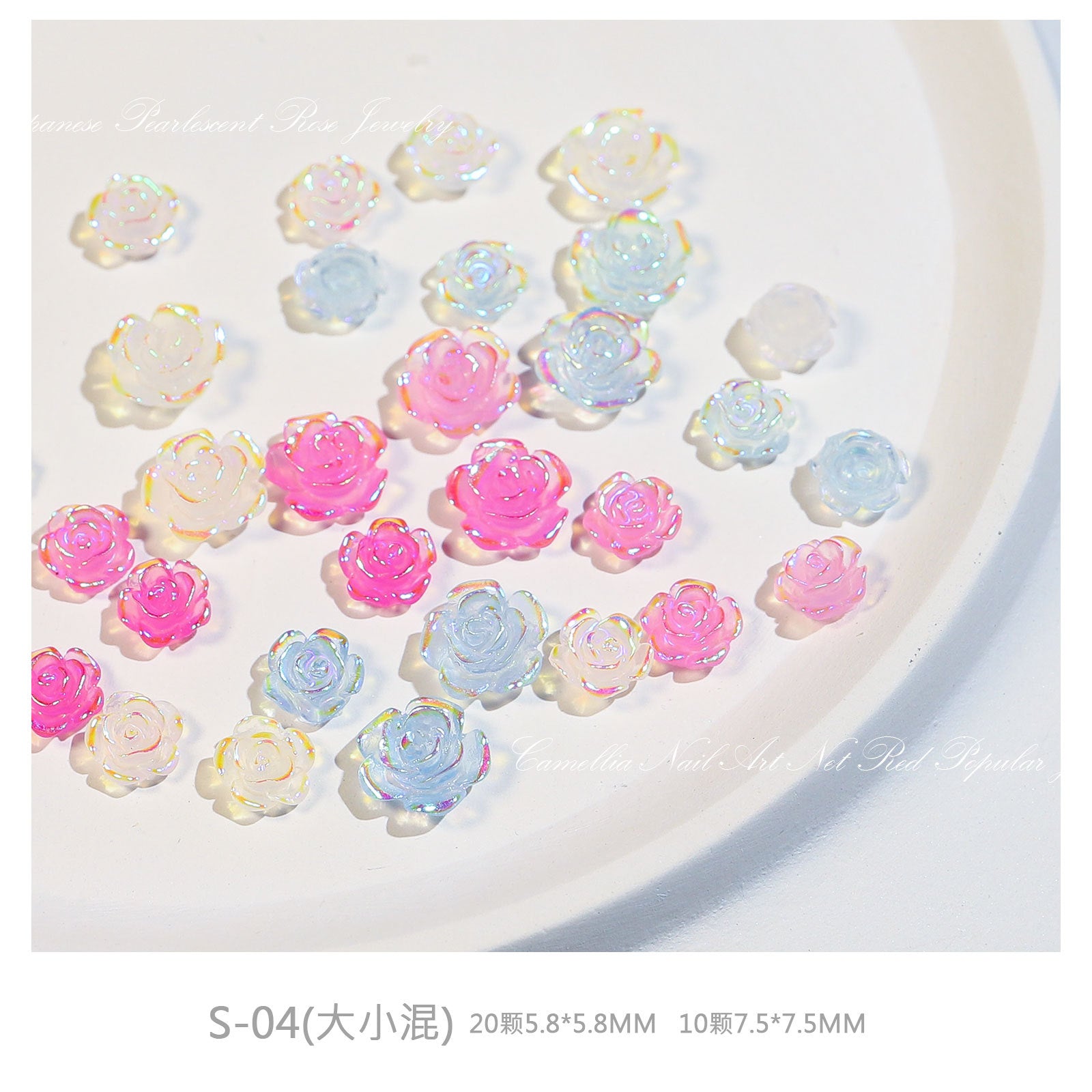 FDMD004 Camellia manicure, white aurora three-dimensional flower bow, nail accessories diamond ornaments