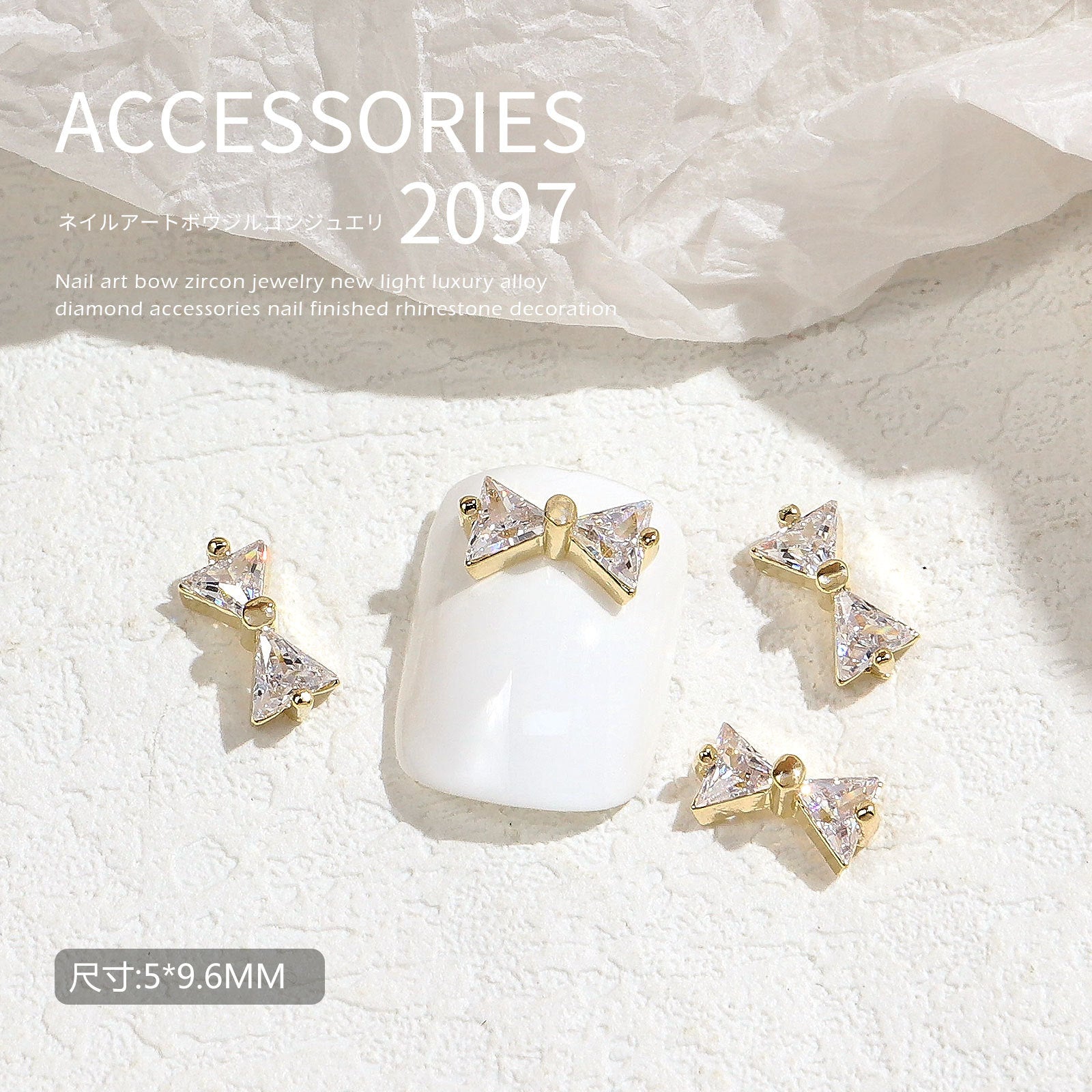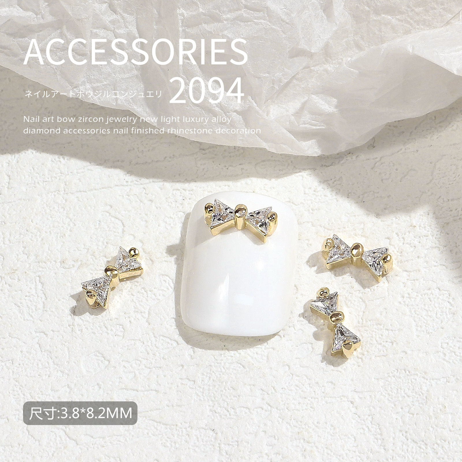 FDMD012 Simple fingertip triangular bow zircon jewelry, textured and versatile butterfly nails decorated with diamonds