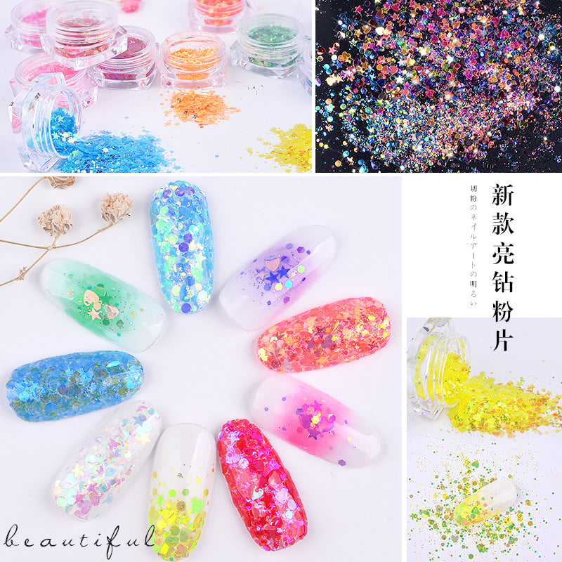 FFMB019 Nail art sequins super glitter thickness mixed, glitter magic combination sequins, DIY phototherapy nail decoration
