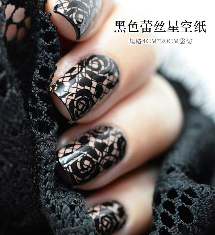 FSMA012 Hot sale manicure black lace starry sky stickers, nail stickers starry sky paper 10 sheets mixed 20cm