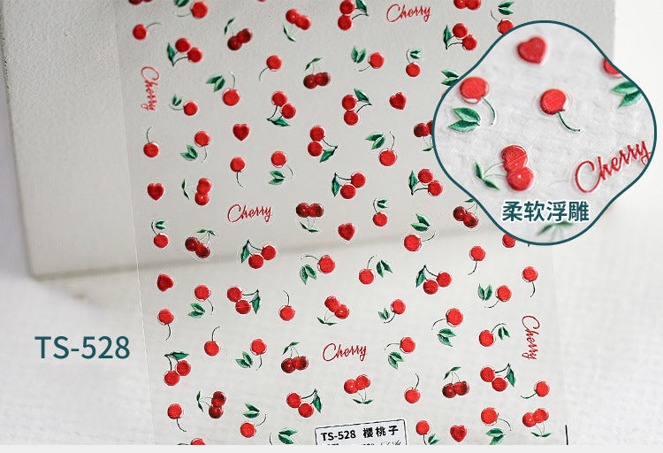 NS5D001 New Summer Nail Leave 5D Nail Sticker Adhesive Decal Summer Drinking Fruit Slider Laser Nail Art Decoration Manicure Wrap 3D
